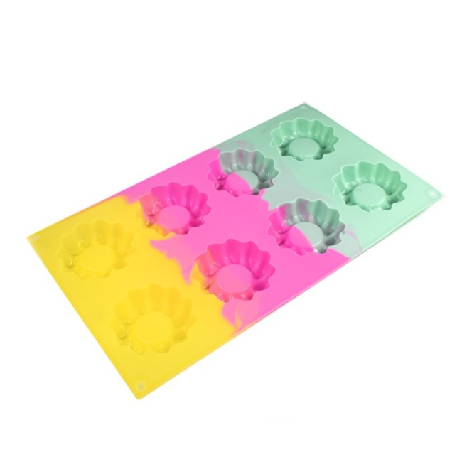 Molde de reposteria dona x 8 compartimentos. Material: Silicona Color: Rosado, verde, azul, morado.