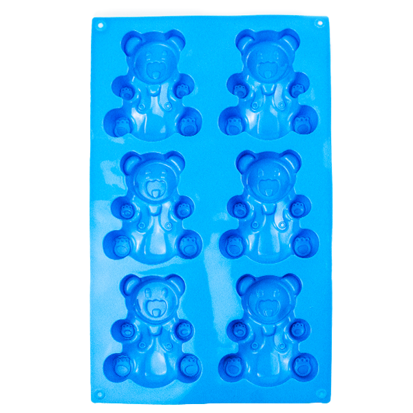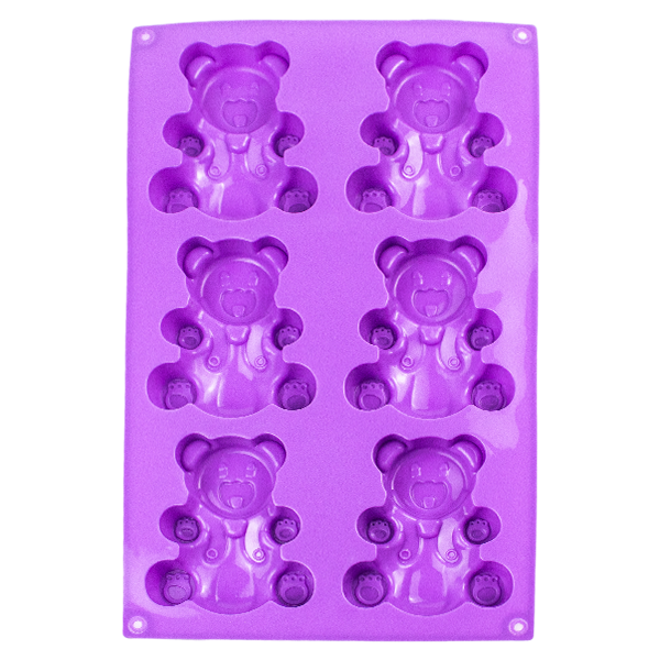 Molde de resposteria en forma de osos. Material: Silicona Color: Rojo, azul, morado.