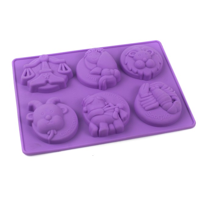 Molde signos zodiacales Material: Silicona Color: Rosado, rojo, azul, morado