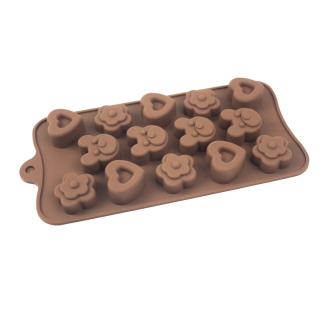 Molde de corazones, flores y osos. Material: Silicona Color: Disponible en la foto.