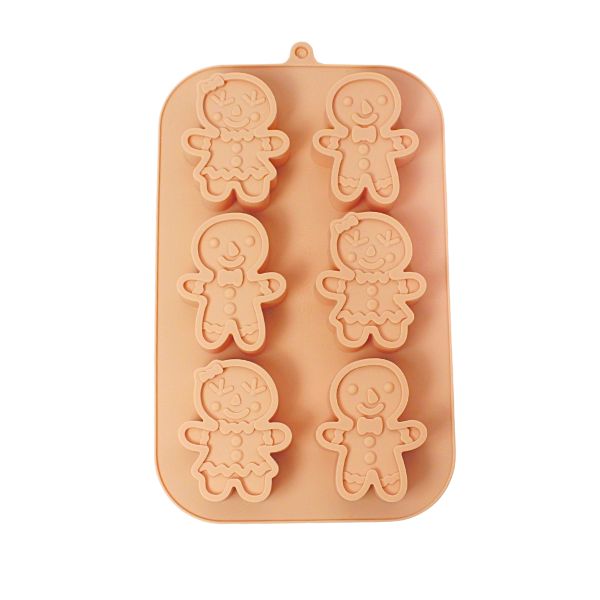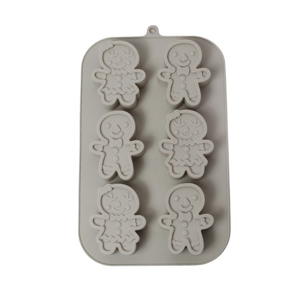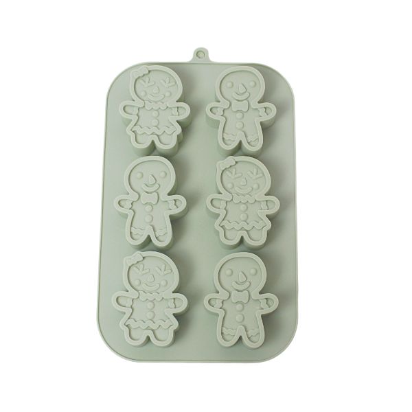 Molde de repostería con diseño de galleta de jengibre. Material: Silicona Color: Gris, verde, salmon