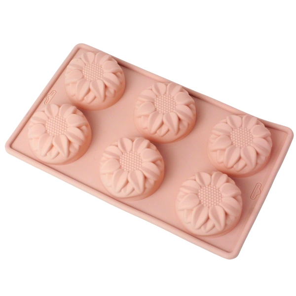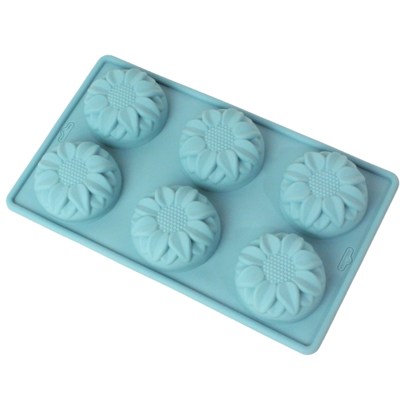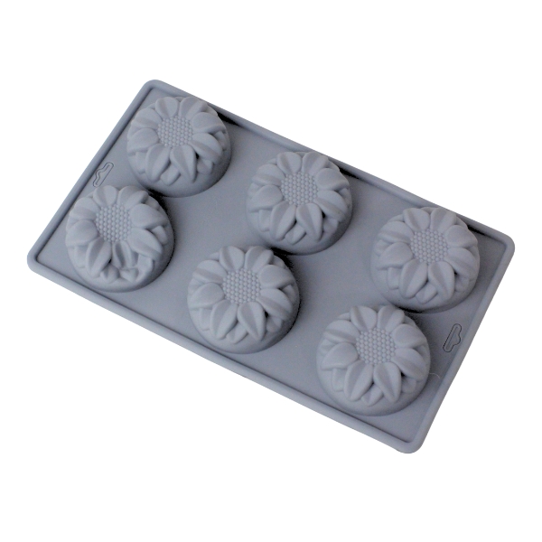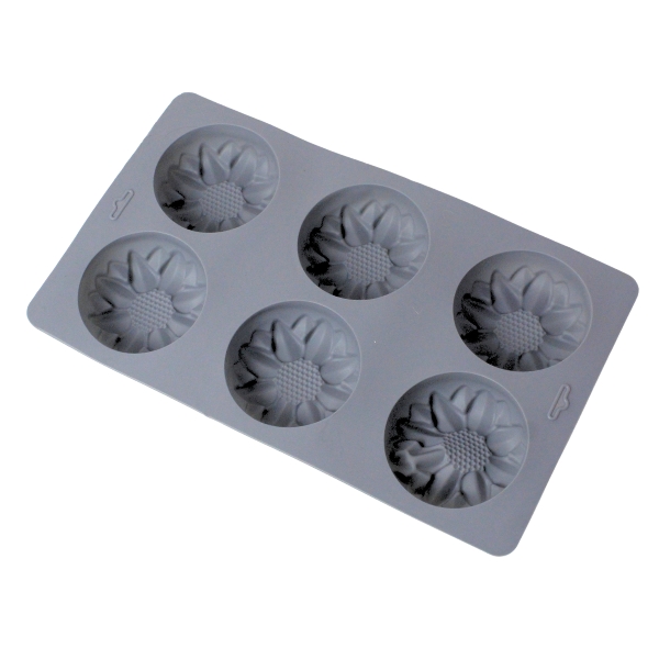 Molde de girasol para repostería. Material: Silicona Color: Gris, salmón, verde