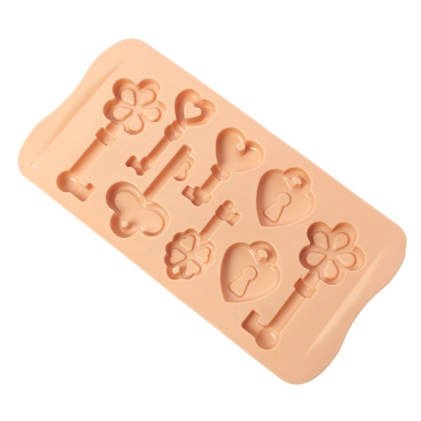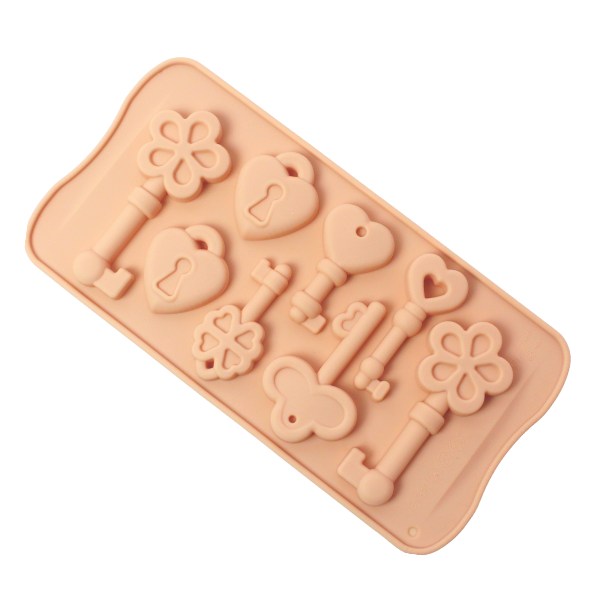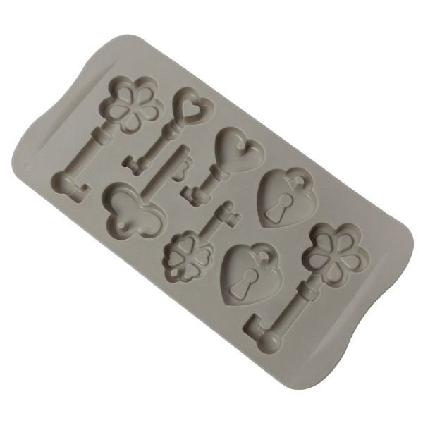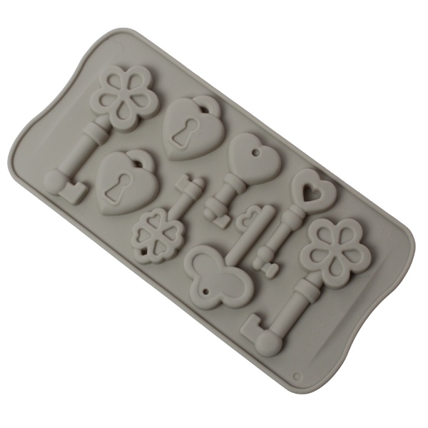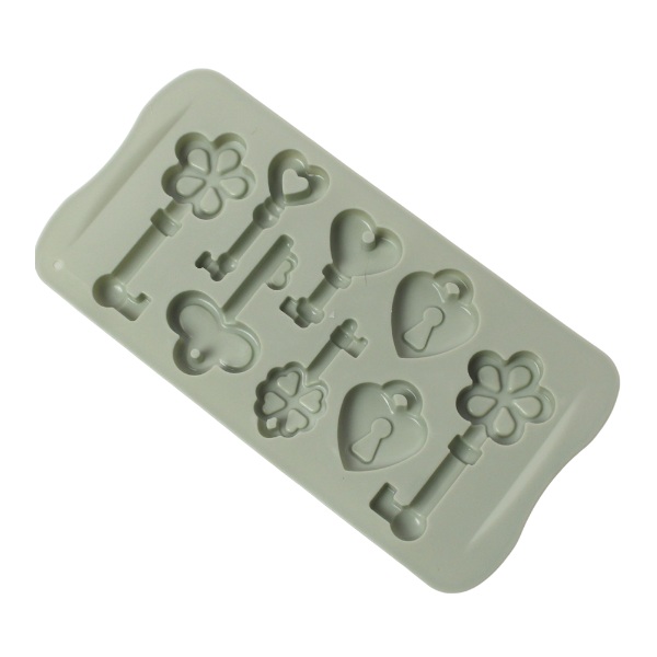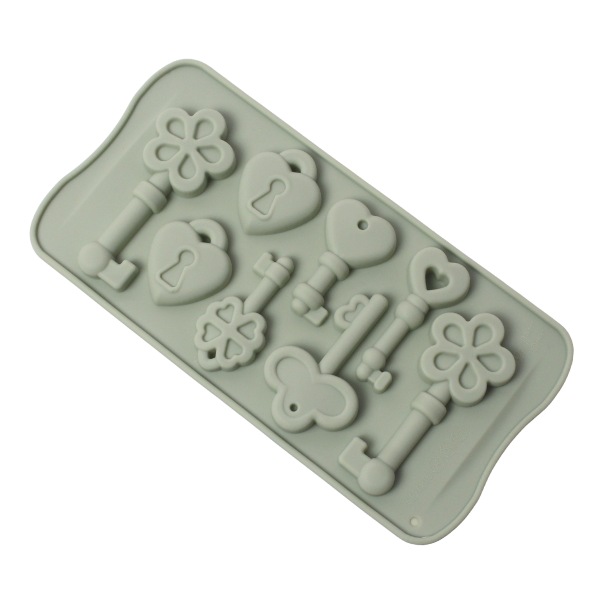 Molde de respostería llaves y candados de corazón. Material: Silicona Color: Gris, verde, salmon