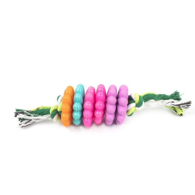 Juguete mordedor, cuenta con piezas de engranaje giratoria. Material: Plástico, poliéster Color: Disponible en la foto Disponible: Razas pequeñas y medianas