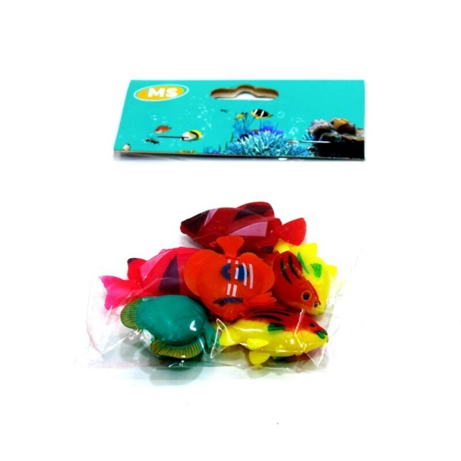 Peces artificiales para acuario. Material: Plástico Presentación: Paquete x 6 UND