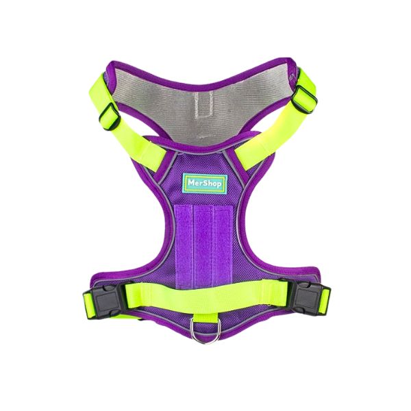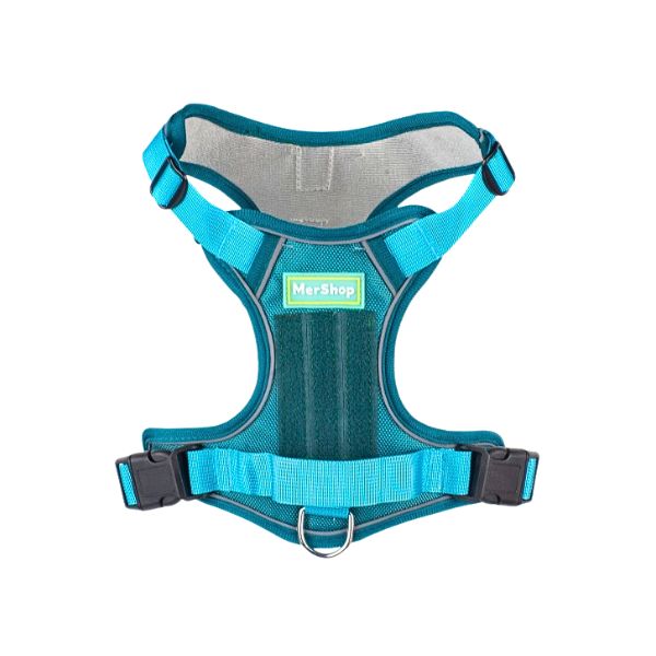 Pechera anti-tirones, cuenta con hebillas ajustables, broches de seguridad, velcro para personalizar y anillo tipo D en la parte superior e inferior para fijar la correa. Material: PoliĆ©ster, metal Color: Negro, verde, azul, morado Disponible: Razas medianas y grandes. Medidas: TALLA S: CUELLO 30-41 CM TORSO MIN-MAX 41-53 CM PESO MAXIMO – APROX 5-11 KG TALLA M: CUELLO 40-53 CM TORSO MIN-MAX 56-58 PESO MAXIMO – APROX 11-23 KG TALLA L: CUELLO 46-66 CM TORSO MIN-MAX 61-76 CM PESO MAXIMO APROX 23-36 KG TALLA XL: CUELLO 70-81 CM TORSO MIN-MAX 70-82 CM PESO MAXIMO – APROX 36-50 KG TALLA XXL: CUELLO 77-98 CM TORSO MIN-MAX 86-102CM PESO MAXIMO – APROX 51-80 KG