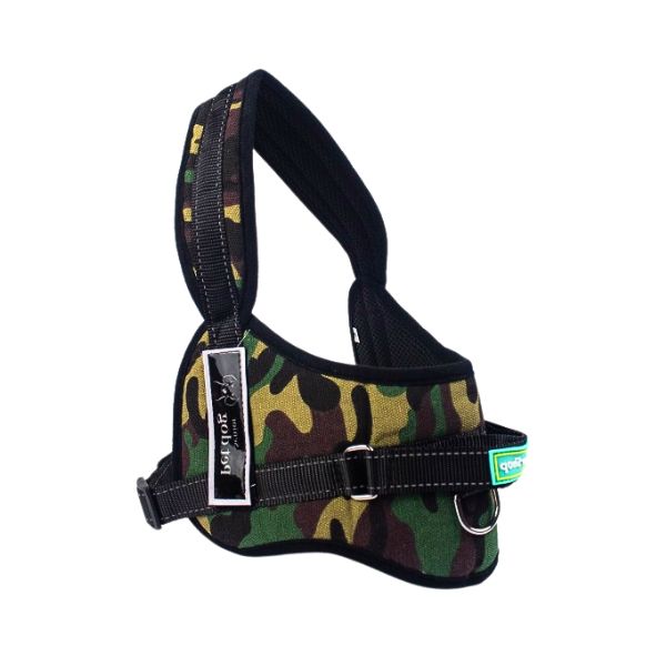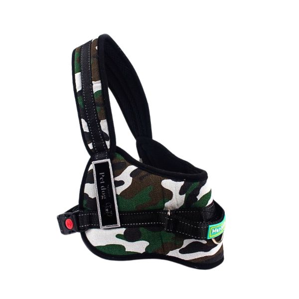 Pechera con sistema anti-tirones cuenta con broche de seguridad, correas con tejido reflectivo y anillo tipo D para fijar la correa. Material: Poliéster, algodón, metal Color: Rojo, negro, azul, estampado militar, bandera de IG Disponible: Razas medianas y grandes. Medidas: TALLA S: CUELLO 30-41 CM TORSO MIN-MAX 41-53 CM PESO MAXIMO – APROX 5-11 KG TALLA M: CUELLO 40-53 CM TORSO MIN-MAX 56-58 PESO MAXIMO – APROX 11-23 KG TALLA L: CUELLO 46-66 CM TORSO MIN-MAX 61-76 CM PESO MAXIMO APROX 23-36 KG TALLA XL: CUELLO 70-81 CM TORSO MIN-MAX 70-82 CM PESO MAXIMO – APROX 36-50 KG, TRAILLA 1,20 CM
