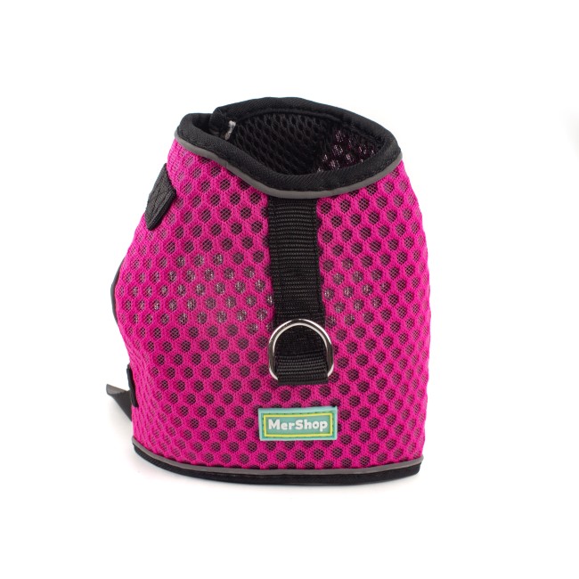 Pechera con bordes reflectivos, cuenta velcro ajustable, broche de seguridad y anillo tipo D para fijar la correa. Material: Poliéster, metal Color: Rojo, rosado, morado, azul Disponible: Razas pequeñas Medidas: TALLA XS: CUELLO 23-33 CM TORSO MIN-MAX 30-45 CM PESO MAXIMO – APROX 2-5 KG TALLA L: CUELLO 46-66 CM TORSO MIN-MAX 61-76 CM PESO MAXIMO APROX 23-36 KG TALLA XL: CUELLO 70-81 CM TORSO MIN-MAX 70-82 CM PESO MAXIMO – APROX 36-50 KG