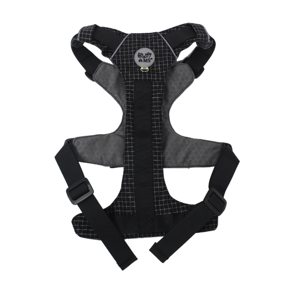 Pechera con tejido reflectivo, cuenta con hebillas ajustables broches de seguridad y bolsillo superior pequeño con cremallera. TALLA S CUELLO 30-41 CM TORSO MIN-MAX 41-53 CM PESO MAXIMO – APROX 5-11 KG