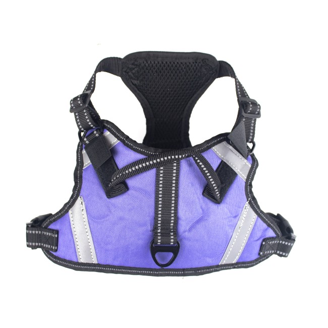 Pechera anti-tirones para mascotas, cuenta con tejido reflectivo, hebillas ajustables y broches de seguridad. Material: Poliéster Color: Azul, negro, rojo, morado, rosado DIsponible: Razas pequeñas, medianas y grandes