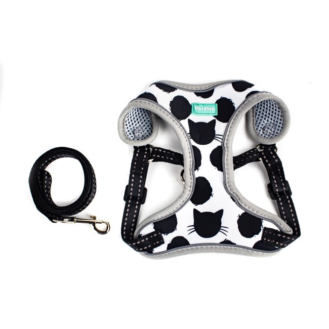 Pechera estampada, cuenta con tejido reflectivo, hebillas ajustables, broche de seguridad y anillos tipo D para fijar la correa. Material: Poliéster, metal Color: Rosado, negro, fucsia, blanco, azul Disponible: Razas pequeñas Medidas: TALLA M CUELLO 40-53 CM TORSO MIN-MAX 56-58 PESO MAXIMO – APROX 11-23 KG, TRAILLA 1,20 CM
