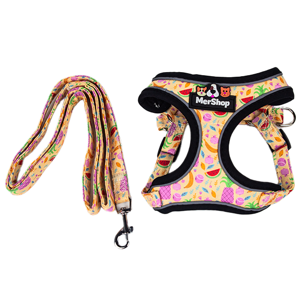 Pechera estampada para mascotas, cuenta con tejido reflectivo, hebillas ajustables, broche de seguridad y anillos tipo D, cuenta con correa. Material: Poliéstar Estampado: Olas, frutas tropicales, rayas de zebra, corazones. Disponible: Razas pequeñas, medianas.
