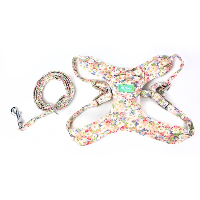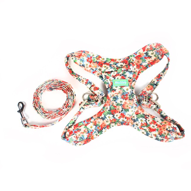Pechera con estampado de flores, hebillas ajustables, broche de seguridad en la parte superior y anillos tipo D de metal para fijar la correa. Material: Poliéster, metal Color: Negro, rosado, verde, rojo Disponible: Razas pequeñas y medianas Medidas: TALLA XS: CUELLO 23-33 CM TORSO MIN-MAX 30-45 CM PESO MAXIMO – APROX 2-5 KG, TRAILLA 1,20 CM TALLA S: CUELLO 30-41 CM TORSO MIN-MAX 41-53 CM PESO MAXIMO – APROX 5-11 KG, TRAILLA 1,20 CM TALLA M: CUELLO 40-53 CM TORSO MIN-MAX 56-58 PESO MAXIMO – APROX 11-23 KG, TRAILLA 1,20 CM TALLA L: CUELLO 46-66 CM TORSO MIN-MAX 61-76 CM PESO MAXIMO APROX 23-36 KG, TRAILLA 1,20 CM TALLA XL: CUELLO 70-81 CM TORSO MIN-MAX 70-82 CM PESO MAXIMO – APROX 36-50 KG, TRAILLA 1,20 CM