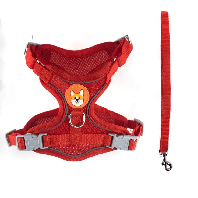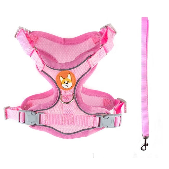 Pechera anti-tirones cuenta con hebillas ajustables, broche de seguridad y correa. Material: Poliéster, metal Color: Naranja, rojo, azul, rosado Disponible: Razas pequeñas, medianas