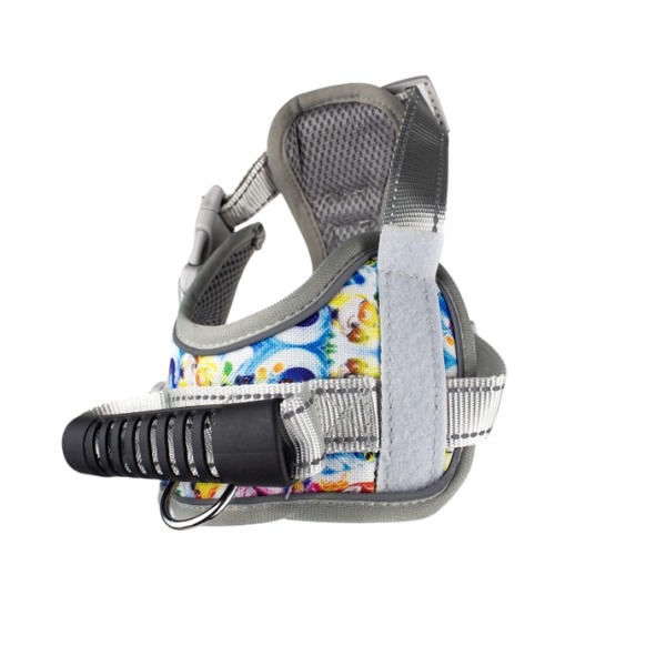 Pechera anti-tirones, cuenta con hebillas ajustables, broches de seguridad, velcro adhesivo personalizable a los costados y anillo tipo D en la parte superior e inferior para fijar la correa. Material: PoliƩster, metal Color/Estampado: Rosado, verde, Paw Patrol, perros Disponible: Razas grandes