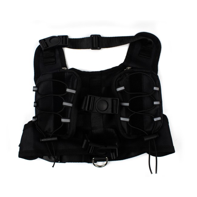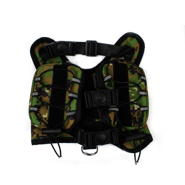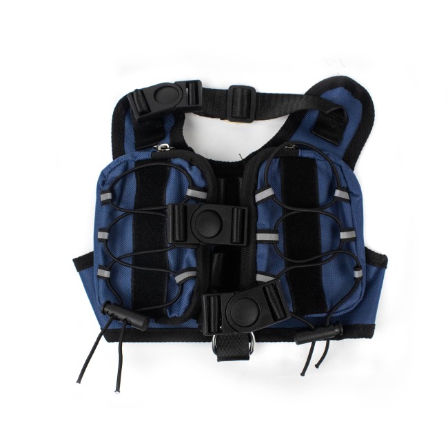 Pechera táctica con bolsillos removibles y correas ajustables para llevar termo. Material: Poliéster, metal Color/Estampado: Negro, azul, verde militar, café militar. Disponible: Razas pequeñas y medianas.