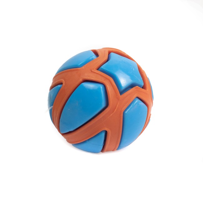 Juguete pelota con sonido interno. Material: Plástico Color: Azul, naranja Disponible: Razas pequeñas y medianas.