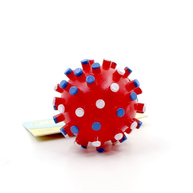 Pelota con diseño de átomo. Material: Caucho Color: Verde, azul, rojo Disponible: Razas pequeñas