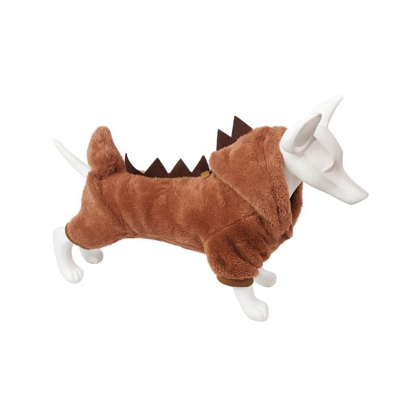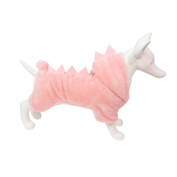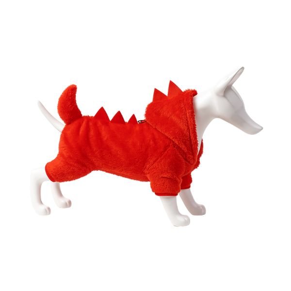 Pijama y/o disfraz de dinosaurio con puas de decoración en la espalda y capucha. Cuenta con anillo tipo D para fijar la correa. Material: Poliéster Color: Rojo, rosa, gris, rosa viejo Disponible: Razas pequeñas