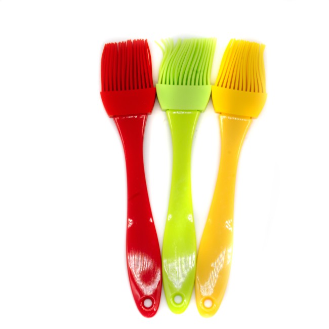 Brocha para cocina o repostería, ideal para untar y esparcir salsas, glaseados y aceites. Material: Silicona Color: Rojo, amarillo, verde.