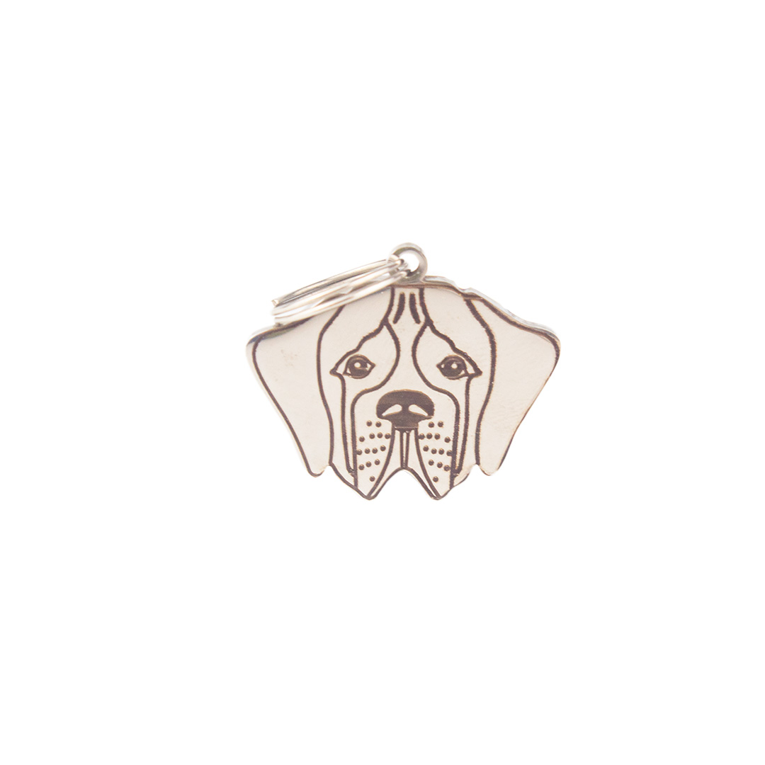 Placa de identificación estampado raza de perros. Material: Metal Color: Pitbull, san bernardo, corgi galés, pastor alemán, poodle, bulldog frances Disponible: Razas pequeñas, medianas y grandes.