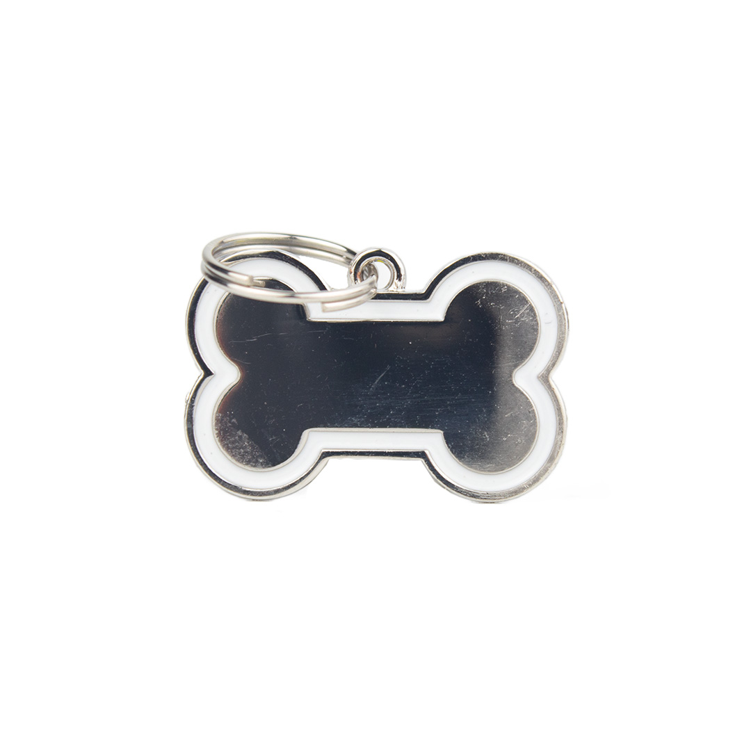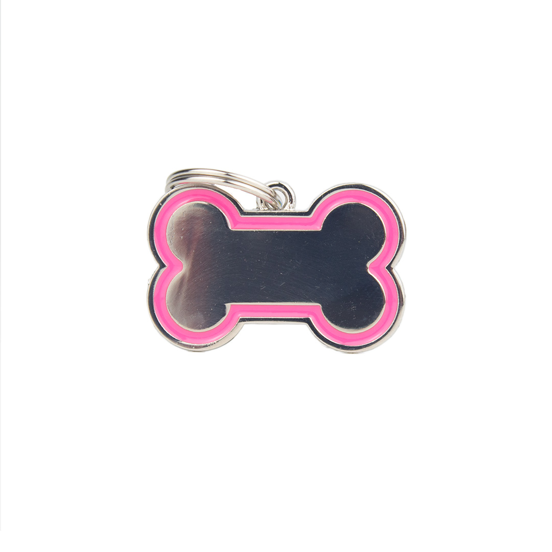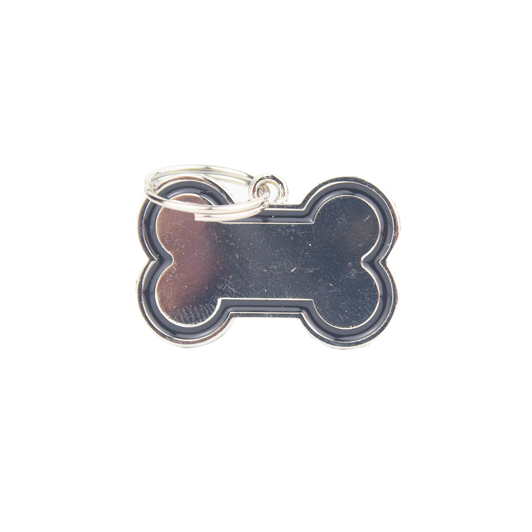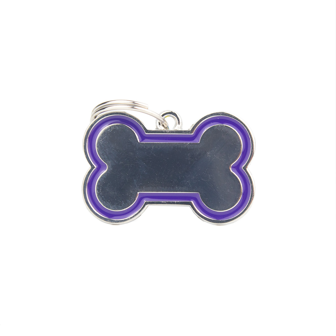 Placa de identificación para mascotas diseño de hueso. Material: Metal Color: Azul, blanco, morado, rosado, negro, rojo