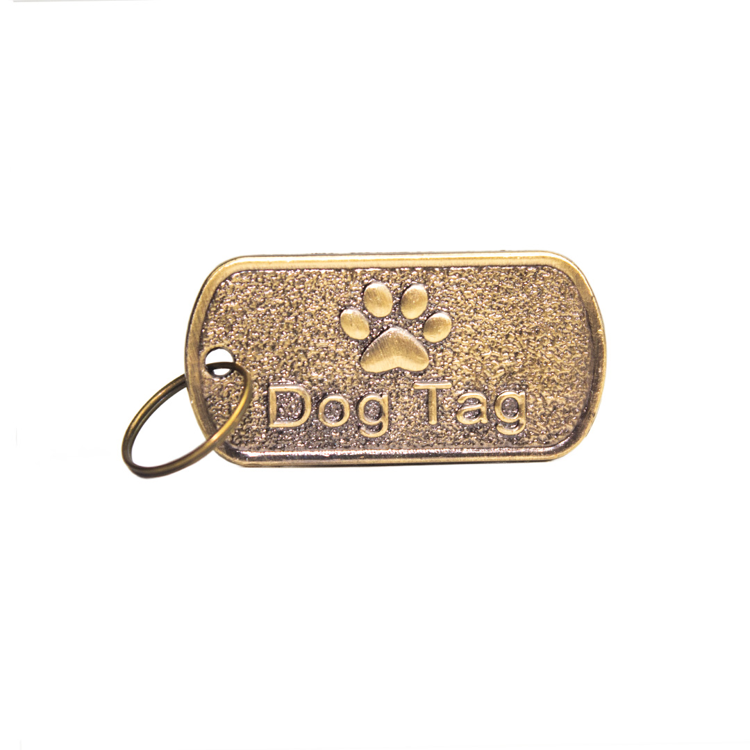 Placa de identificación estilo militar. Material: Metal Color: Dorado. Disponible: Razas medianas y grandes