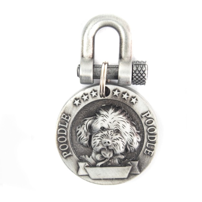 Placa de identificación con estampado de Poodle. Material: Metal Color: Dorado Disponible: Poodle