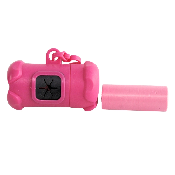 Portabolsa de hueso para mascotas, cuenta con repuesto de bolsa y gancho para ajustar al arnés o bolso. Material: Plástico Color: Fucsia, negro, azul Disponible: Razas pequeñas, medianas y grandes