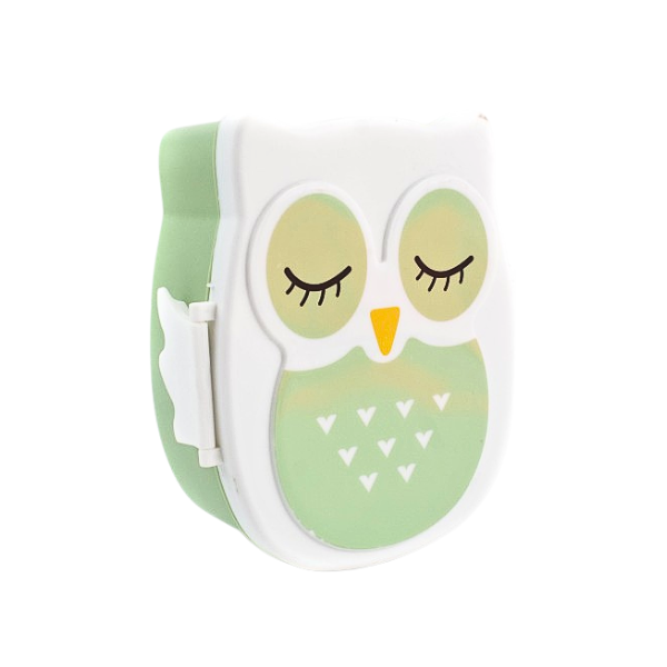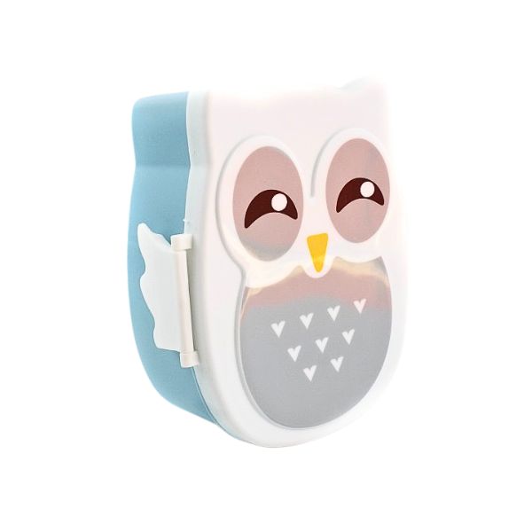 Portacomida buho con cubiertos. Material: Plástico Color: Azul, verde, rosado.