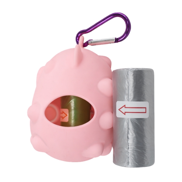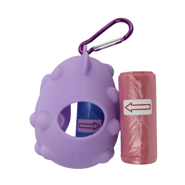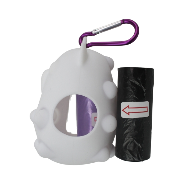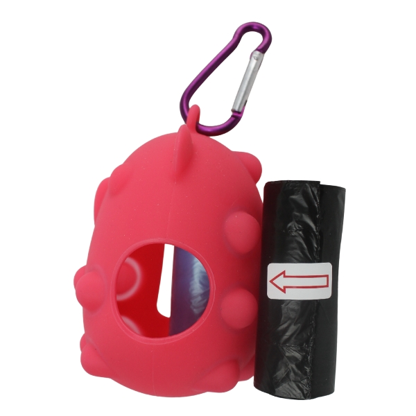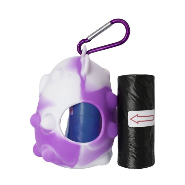 Portabolsa de silicona para mascotas, cuenta con repuesto de bolsa y gancho para ajustar al arnés o bolso. Material: Silicona, plástico Color: Rojo, rosado, lila, blanco, morado con blanco Disponible: Razas pequeñas, medianas y grandes