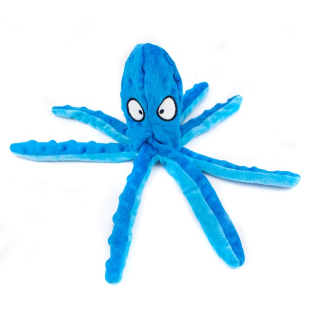 Juguete de felpa pulpo para mascotas, cuenta con sonido interno. Material: PoliƩster Color: Morado, azul Disponible: Razas medianas.