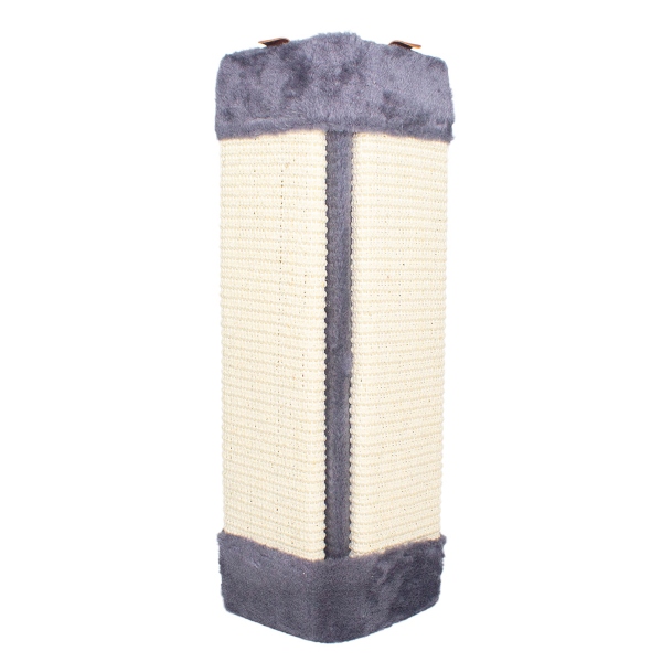 Rascador para adaptar a las esquinas de los muebles, cuenta con tornillos y chazos para asegurar. Material: poliéster, cabuya Color: Café, beige, gris