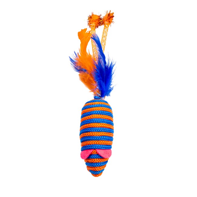 Juguete ratón, cuenta con plumas en la parte inferior. Material: Poliéster, plumas Color: Rojo, azul, naranja, morado, verde Disponible: Razas pequeñas