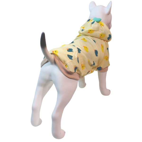 Saco con estampado de patos, cuenta con botones de cierre y capota. Material: Poliéster Color: Verde, morado Disponible: Razas pequeñas