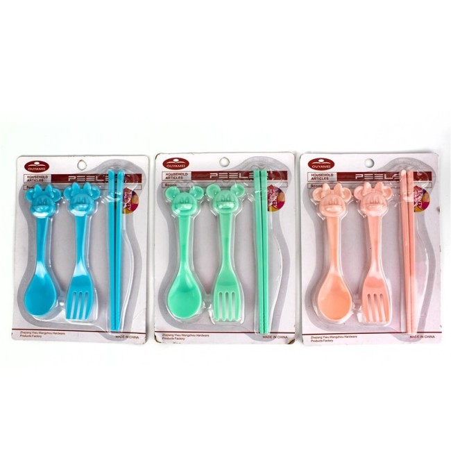 Set de cubiertos para niños con diseño de Mickey Mouse. Material: Plástico Color: Verde, azul, rosado.
