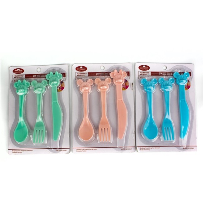 Set de cubiertos para niños con diseño de Mickey Mouse. Material: Plástico Color: Verde, azul, rosado.