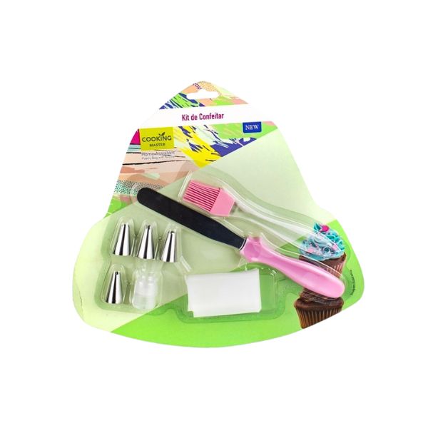 Set de repostería, cuenta con brocha, espátula de glaseado , manga y 5 boquillas para decoración. Material: Metal, silicona, plástico