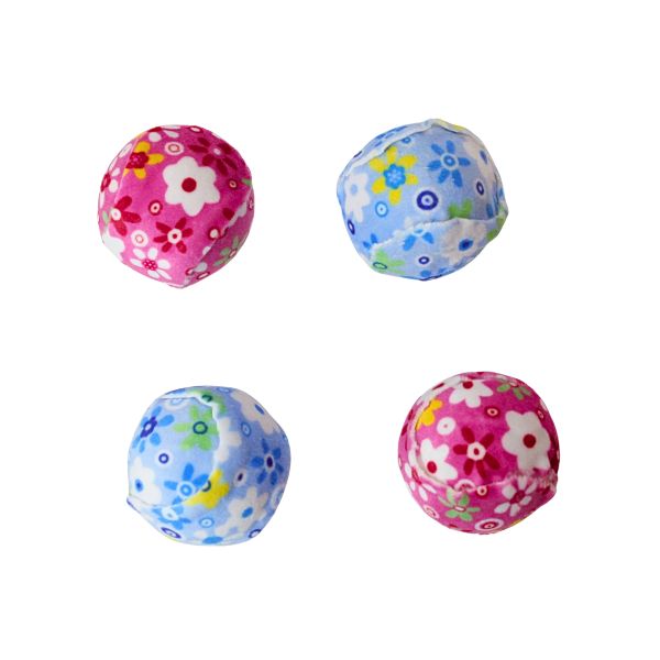 Set x 4 pelotas con estampado de flores, cuenta con sonido interno. Material: Plástico, poliéster Color: Disponible en la foto Disponible: Razas pequeñas