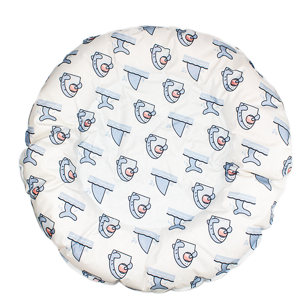 Tapete de enfriamento redondo para mascotas, contiene gel refrescante no tóxico, no requiere agua, ni refigeración. Material: Nylon resistente y gel Estampado: Tiburón Disponible: Razas pequeñas