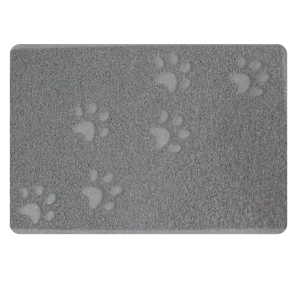 Alfombra multiusos, ideal para usar como alfombra de recoleccíon de suciedad frente a la arenera o frente a los comederos, protector de suelos o de entrada. Material: PVC Color: Caqui, café, gris, rojo, negro Disponible: Razas pequeñas, medianas y grandes