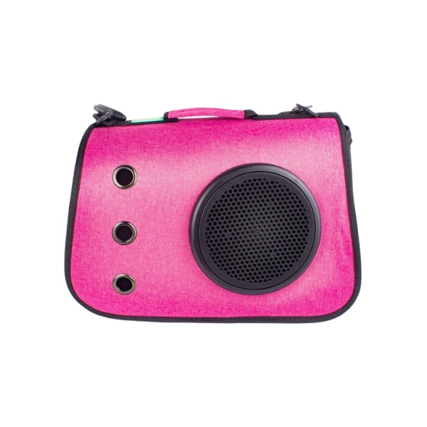 Transportin para mascotas, cuenta con anillos de ventilación, mallas laterales, rejilla y cupula para intercambiar, mango ergonómico y correa para facilitar su transporte. Material: Mezclilla, plástico Color: Café, gris, azul, fucsia Disponible: Razas pequeñas de hasta 10Kg
