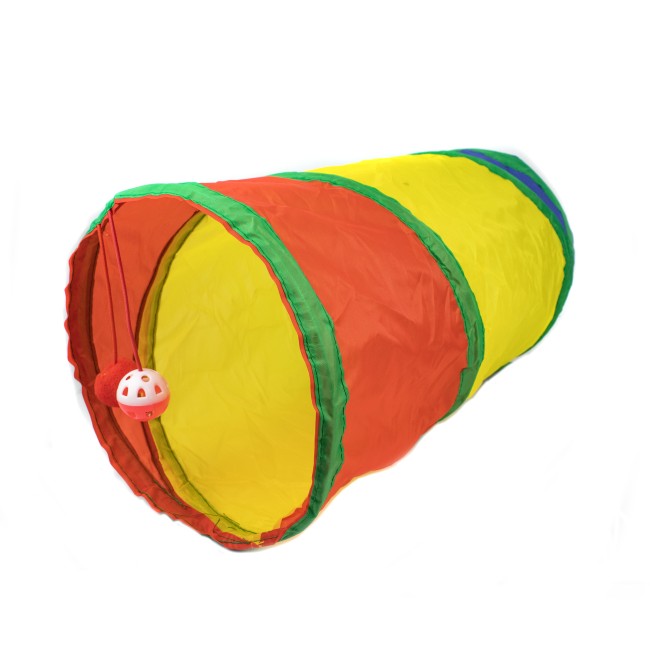 Túnel para mascotas fácil de guardar y transportar cuenta con estructura de alambre que brinda estabilidad, forraje de tela multicolor que brinda flexibilidad y pelota de felpa. Material: Poliéster, alambre Color: Disponible en la foto Disponible: Razas pequeñas