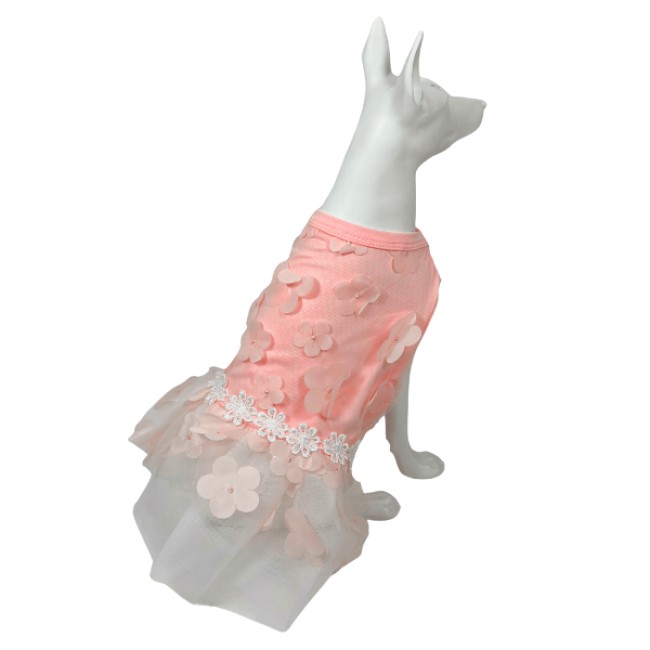 Vestido elegante de flores, cuenta con detalle en encaje y falda tipo tutú. Material: Poliéster Color: Rosado claro, palo rosa, blanco Disponible: Razas pequeñas