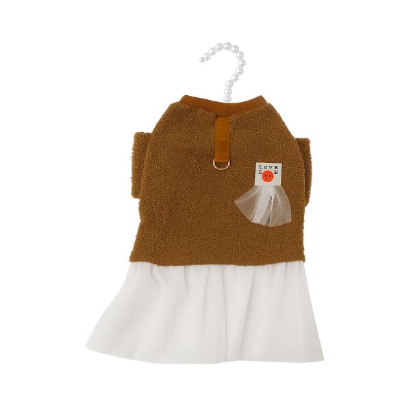 Vestido con tutú para mascotas, cuenta con anillo tipo D para fijar la correa. Material: Poliéster Color: Beige, Café, rosado Disponible: Razas pequeñas