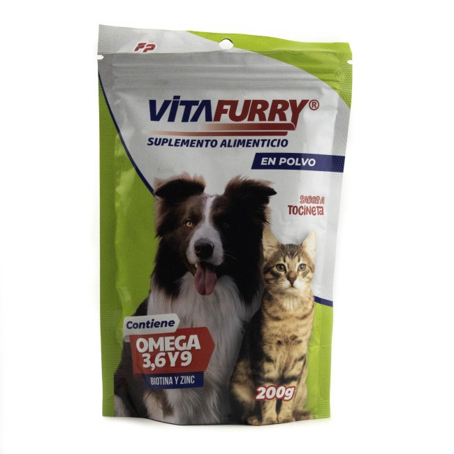 Emulsión con sabor a tocineta, biotina, zinc, vitamina A, omega 3, 6 y 9, entre otros, que controla la caída excesiva de pelaje, mejorando aspecto de la piel y pelaje y fortalece las defensas de perros y gatos. Ingredientes: Aceite de soya y/o girasol y/o maíz y/o aceite de higado de bacalao y/o sardinas y/o aceites concentrados y enriquecidos con ácidos grasos, omegas 3, 6 y 9, Vitamina A, vitamina D3, vitamina E. Presentación: Paquete x 200g Disponible: Para perros y gatos